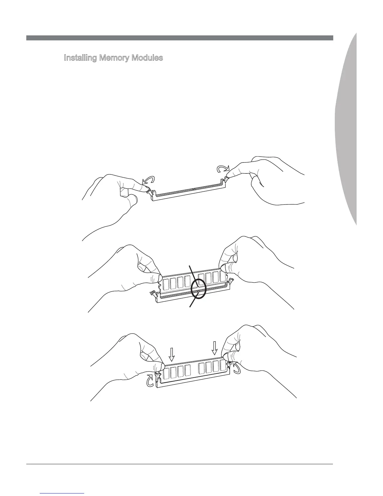 memory module nto the DIMM slot. The memory module has an o󰘯-center notch on