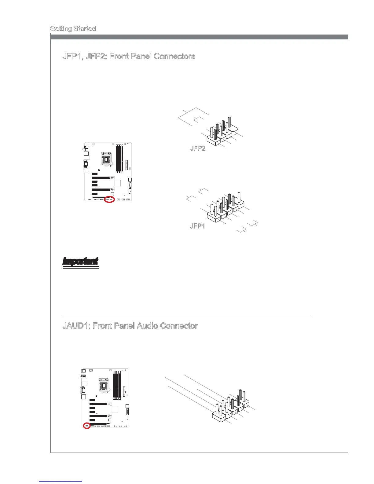 These connectors connect to the front panel swtches and LEDs. The JFP1 connector s