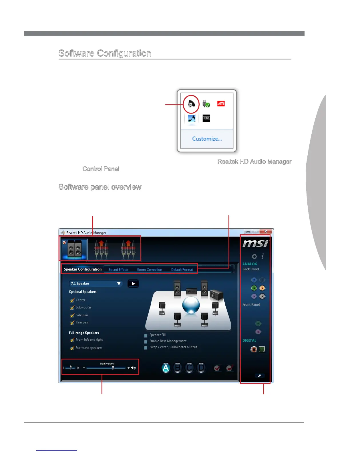 The followng 󰘰gure descrbes the functon of the Realtek HD Audo Manager panel.