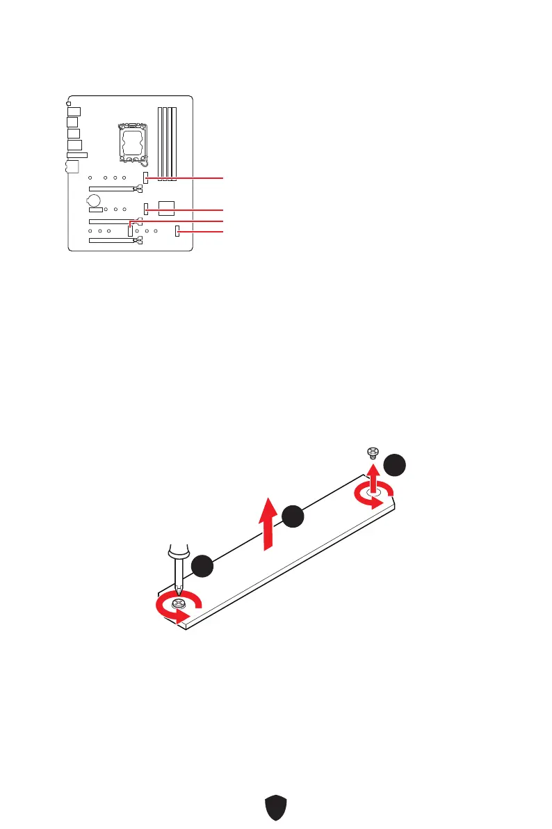1. Loosen the screws of M.2 Shield Frozr heatsink.