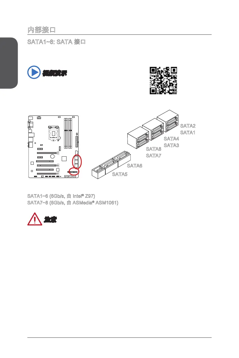 SATA 线的两端有相同的插口,然而,为了节省空间建议连接扁平接口端在主板上。