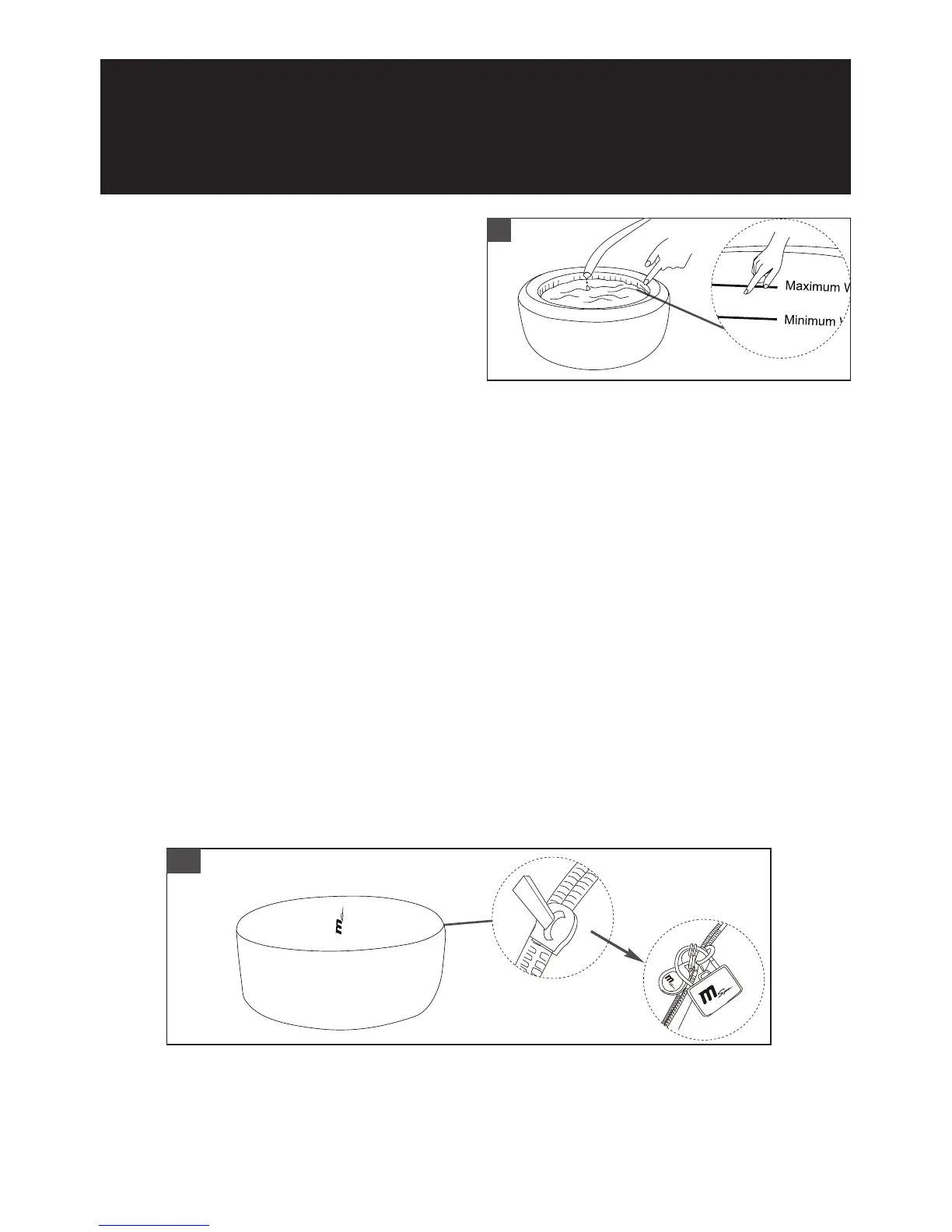 nivel entre la línea Mínima y Máxima marcada en la pared interior del spa. No llene demasiado el