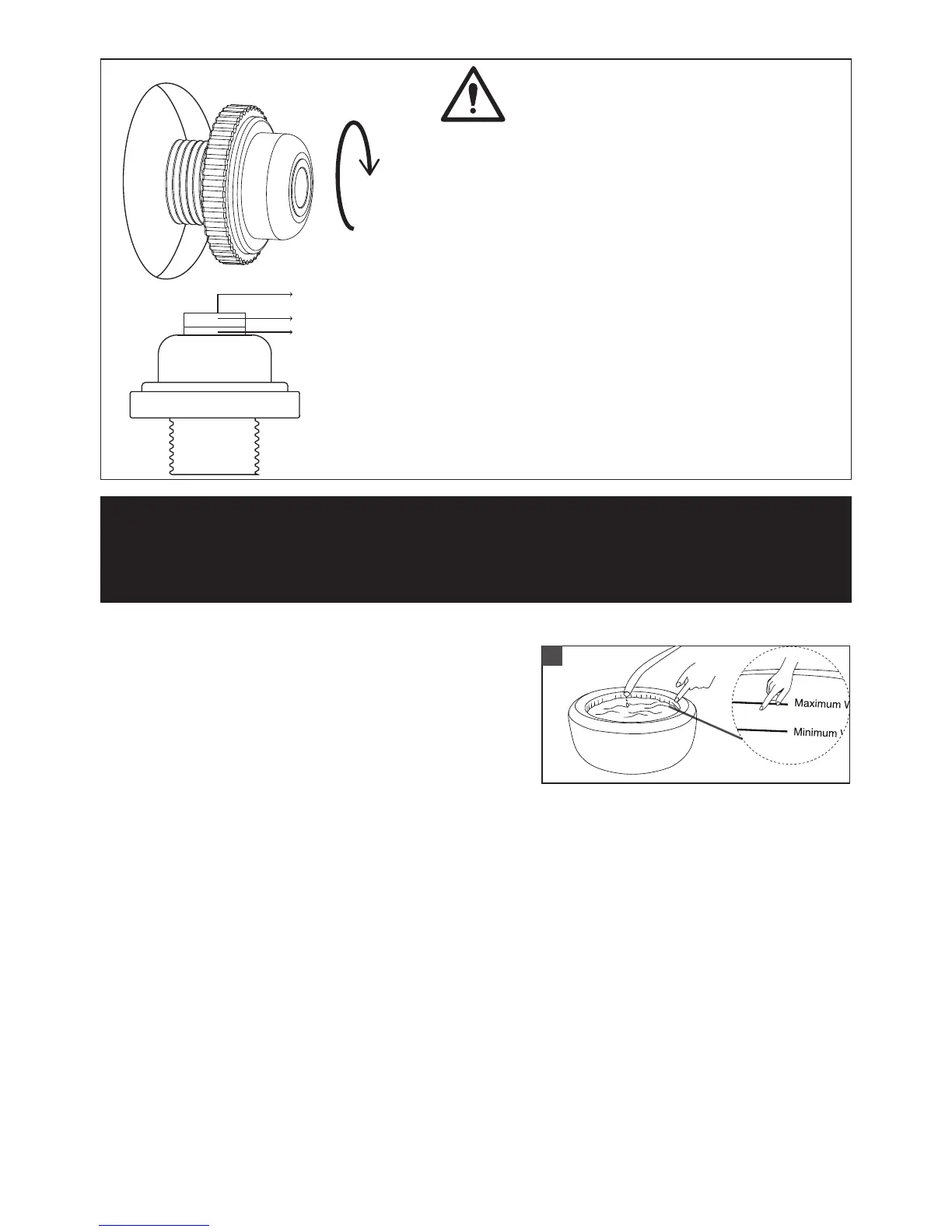 ● Water level must reach the Minimum water line but not exceed the Maximum line to avoid