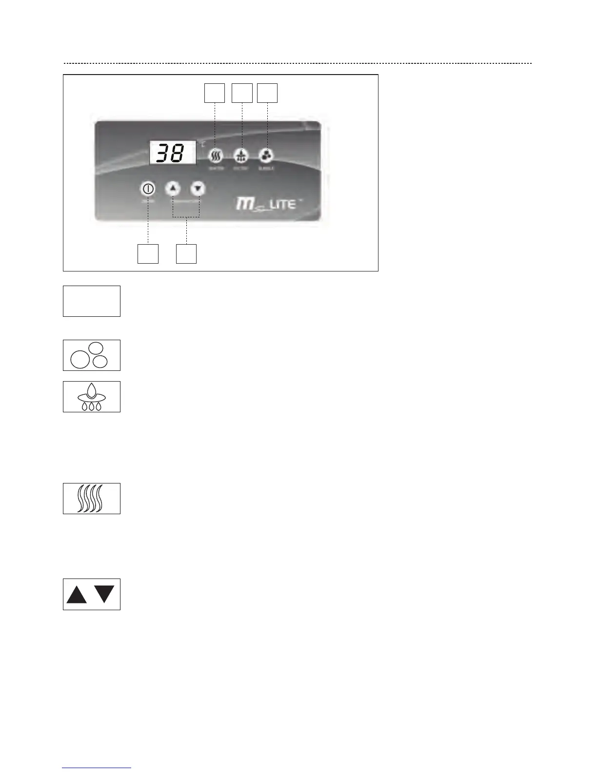 Heater Button: Use this button to activate the HEATING and FILTRATION function at the