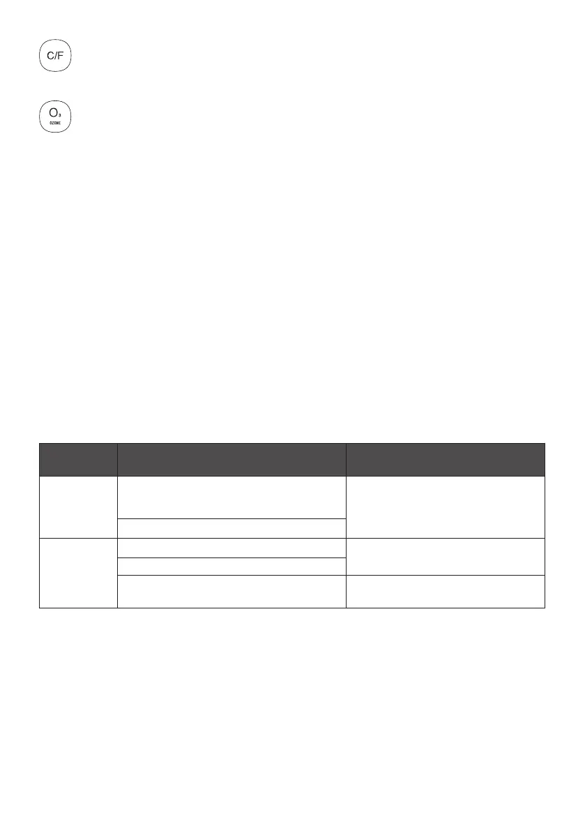 Bouton Ozonateur: pour activer l'ozone. L'icône Ozone s'affiche lorsque la fonction Ozone est