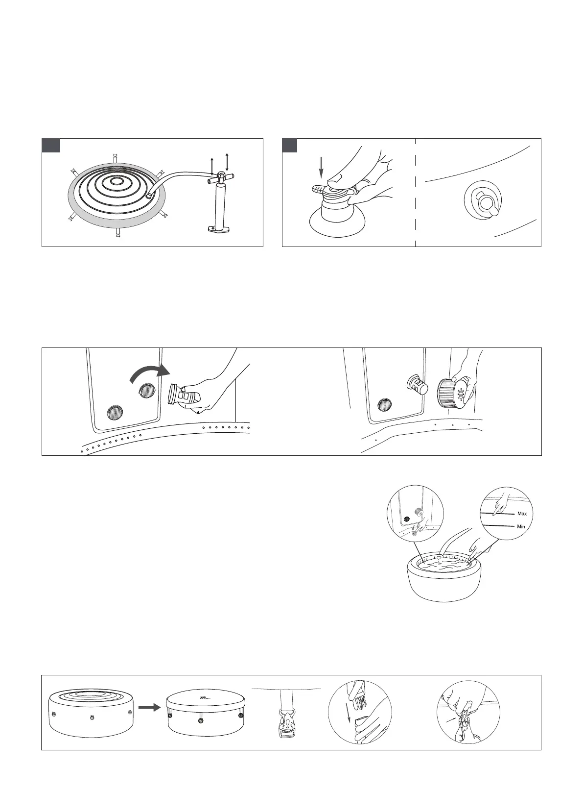 2. Fill the spa tub with fresh water to a level between MIN and MAX marked on the inside of the spa wall.