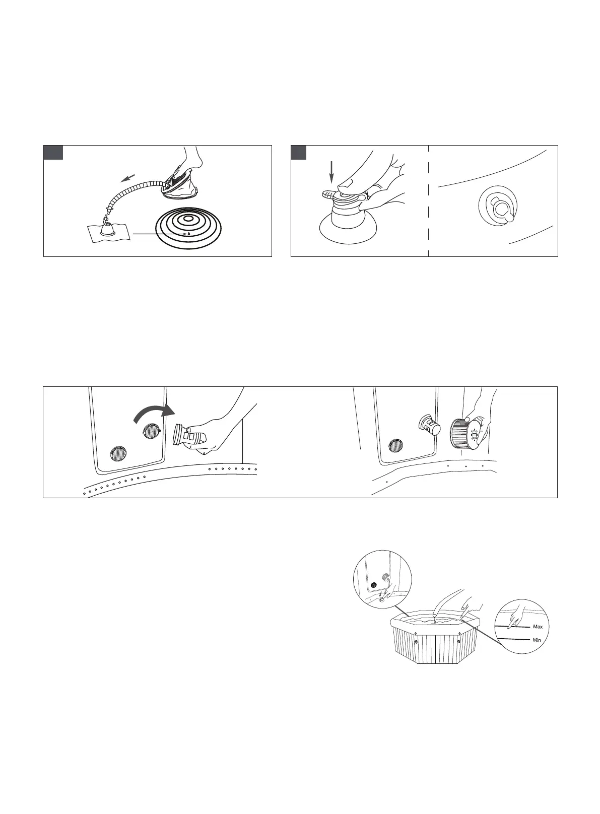 2. Fill the spa tub with fresh water to a level between MIN and MAX marked on the inside