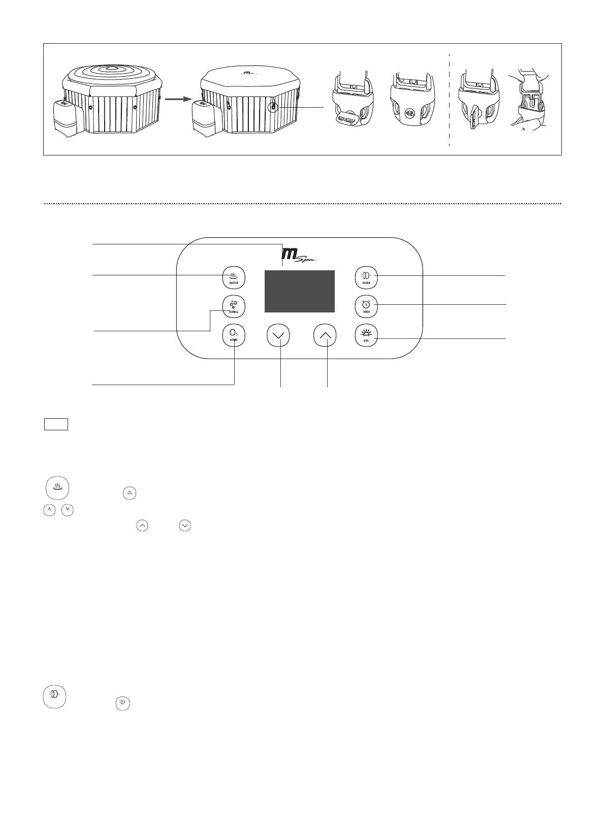 activated. The flashing HEATER icon means the spa is at the set temperature and the heating system is at rest.