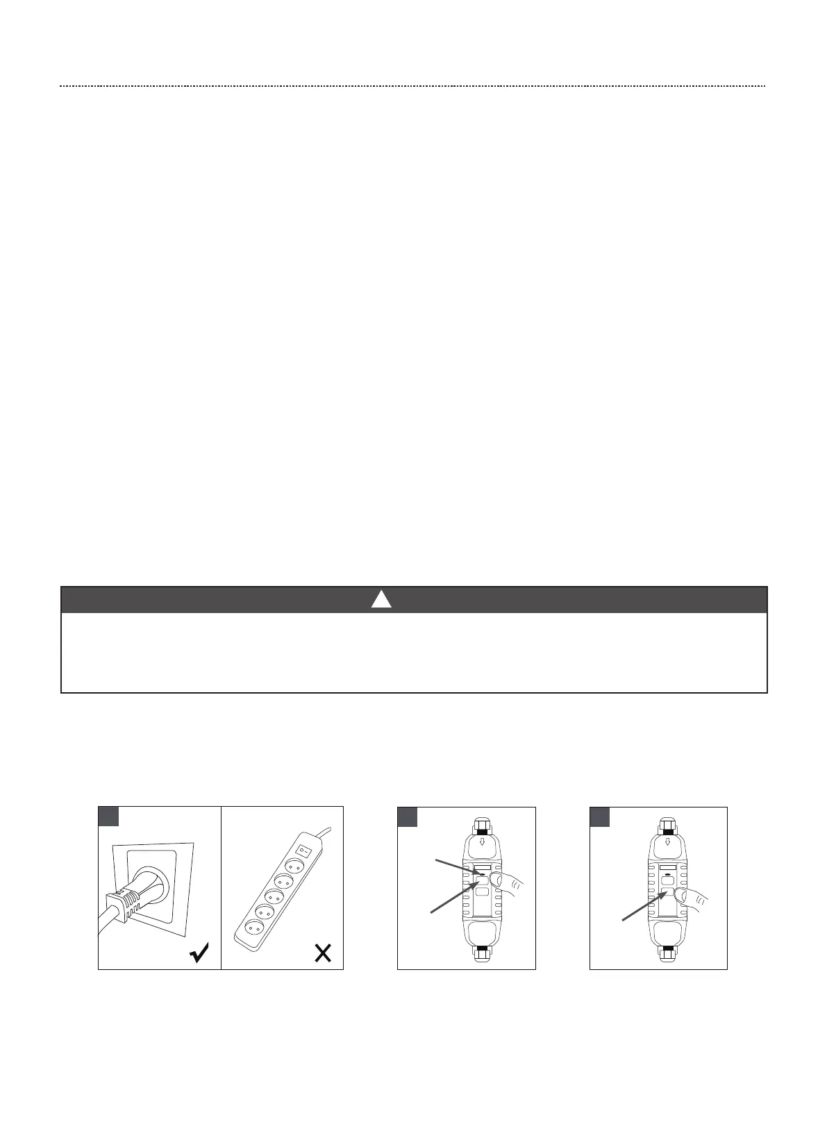 Risk of electric shock: This product is provided with a PRCD located at the end of the power cord. The PRCD must be tested before each use. Do not
