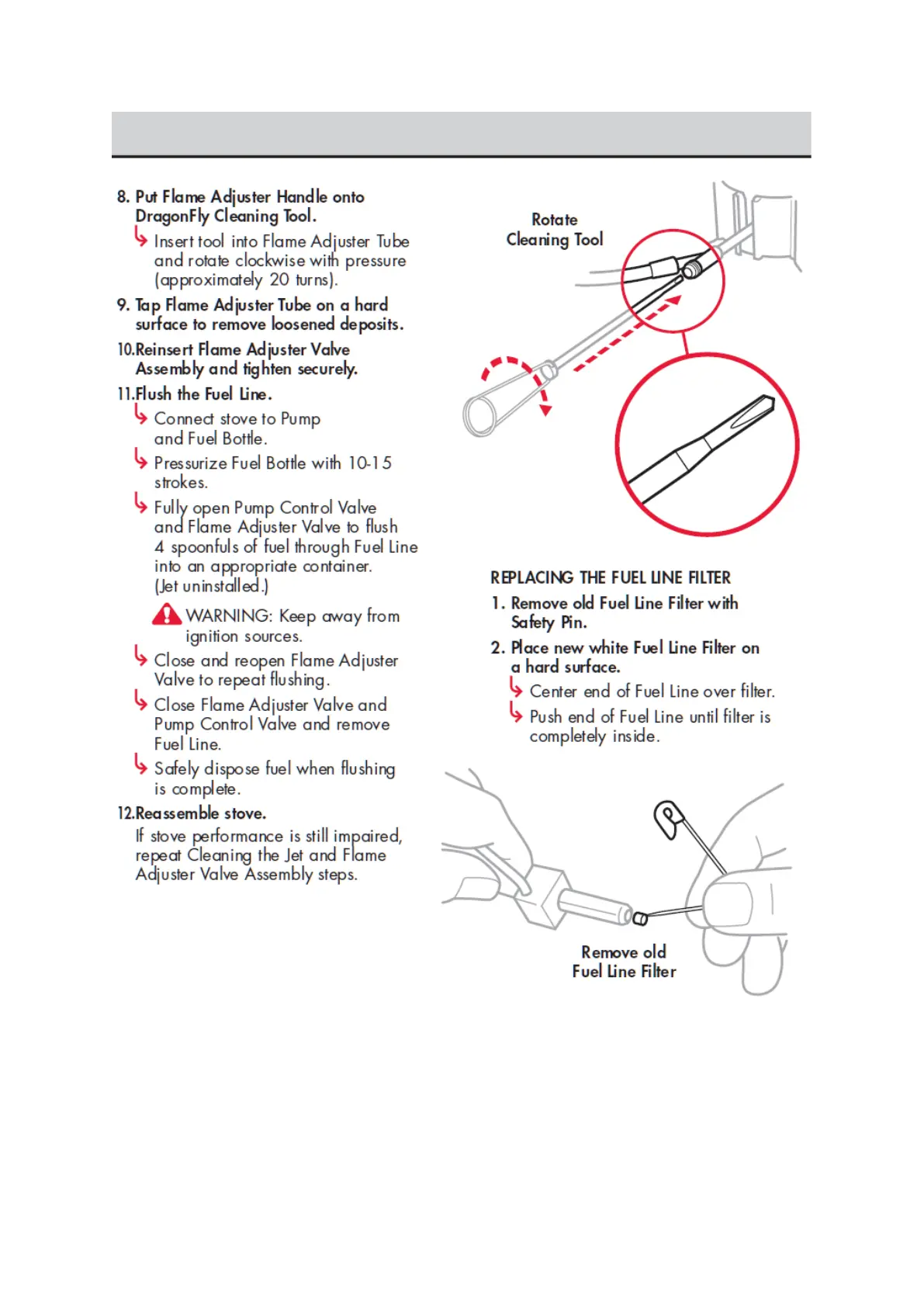 MSR DRAGONFLY - Fuel Line Filter Maintenance; Replacing the Fuel Line Filter