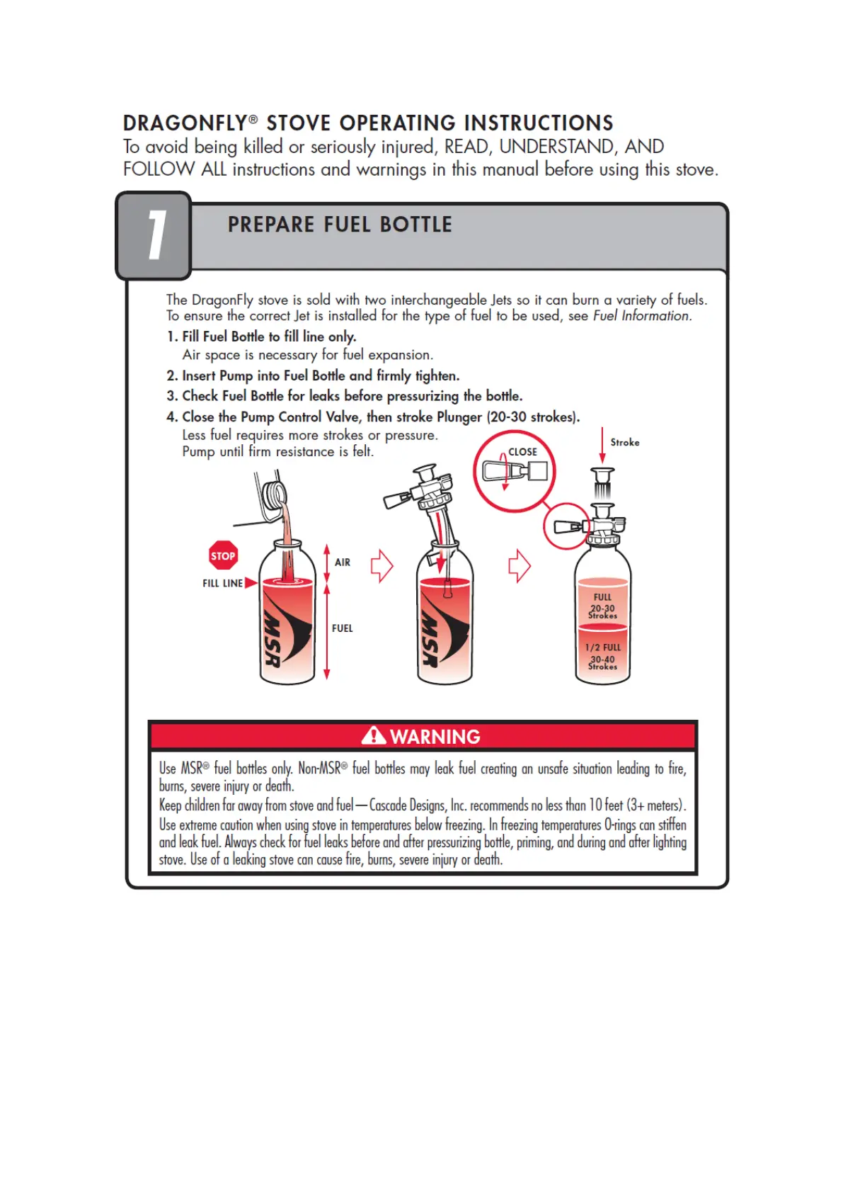 MSR DRAGONFLY - Dragonfly Stove Operating Instructions; Prepare Fuel Bottle
