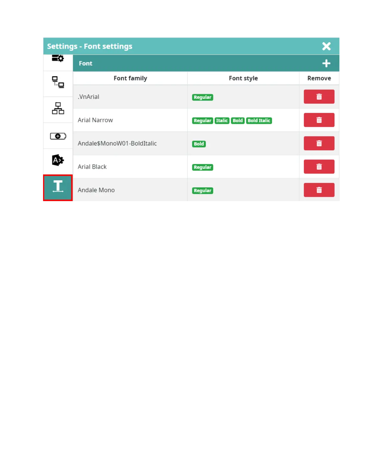 • Remove: Delete unused font out of printer system.