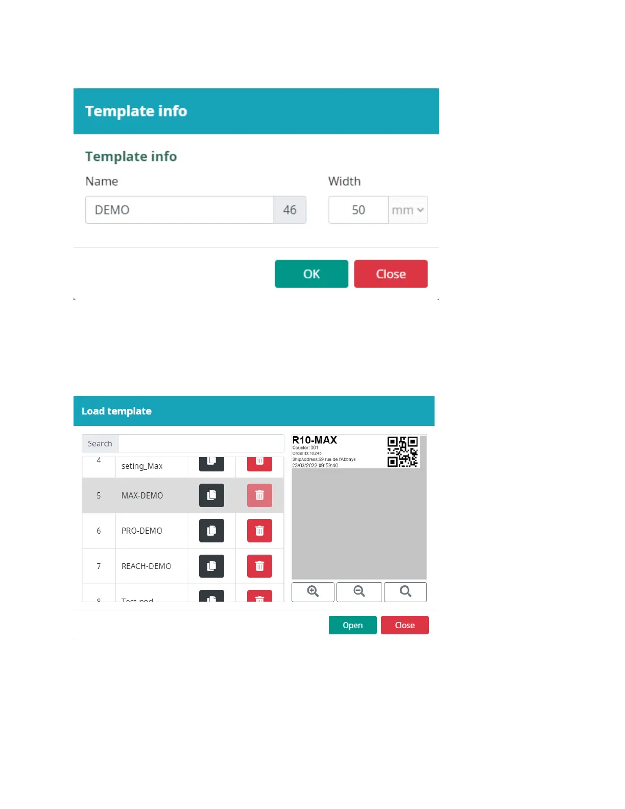 Select Open to open a saved template.