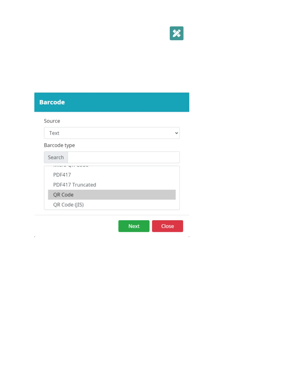 Choose the Source: Text, Counter, Datetime, Shiftcode, Boxlot and Database. Choose a Barcode