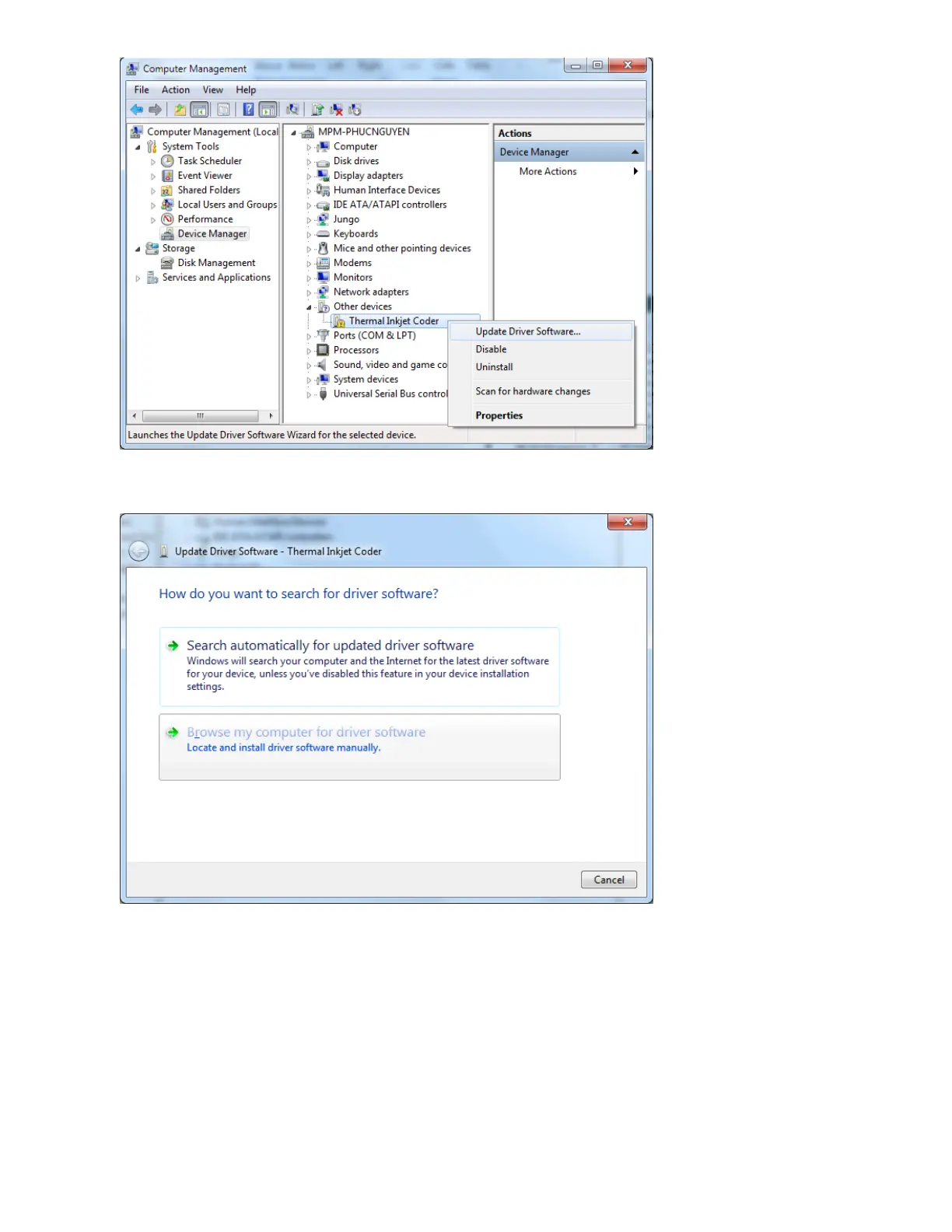 Right click. Select Update Driver Software.