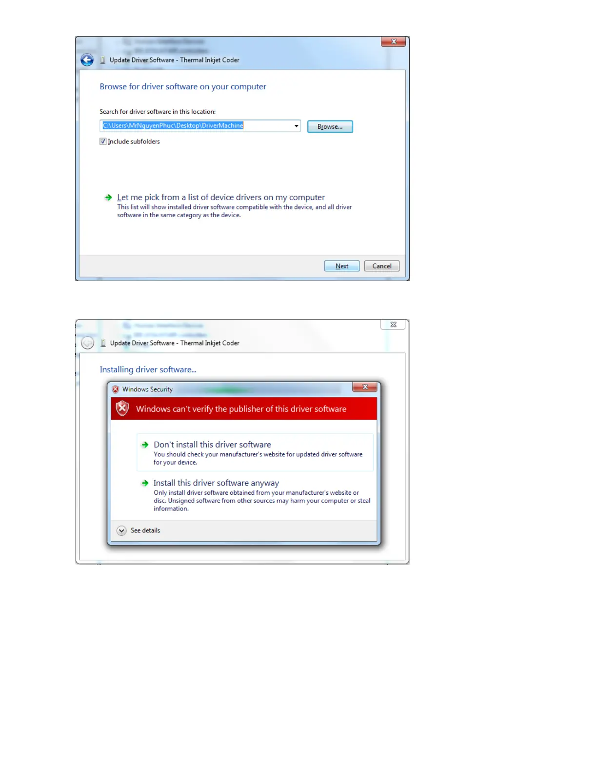 There is a security issue with Windows. No problem, Install this driver software anyway”!