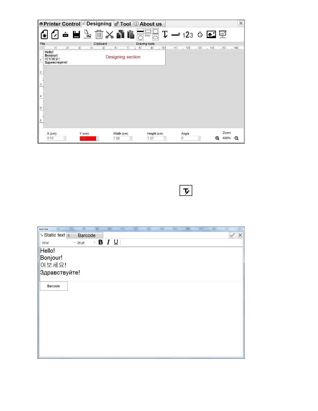 Static Text window will pop up.
