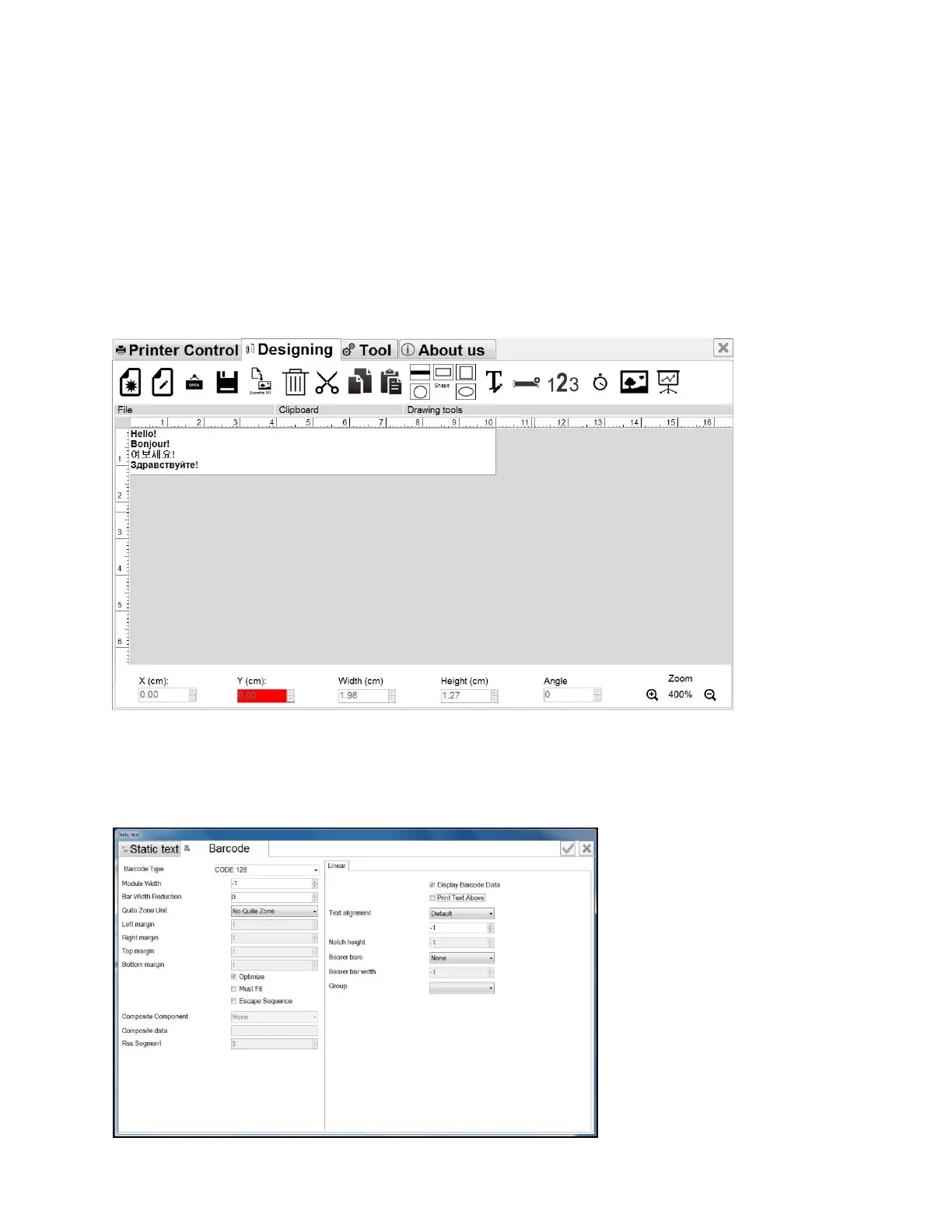 • Click on Barcode tab. A new window will pop up to set the parameters for the barcode.