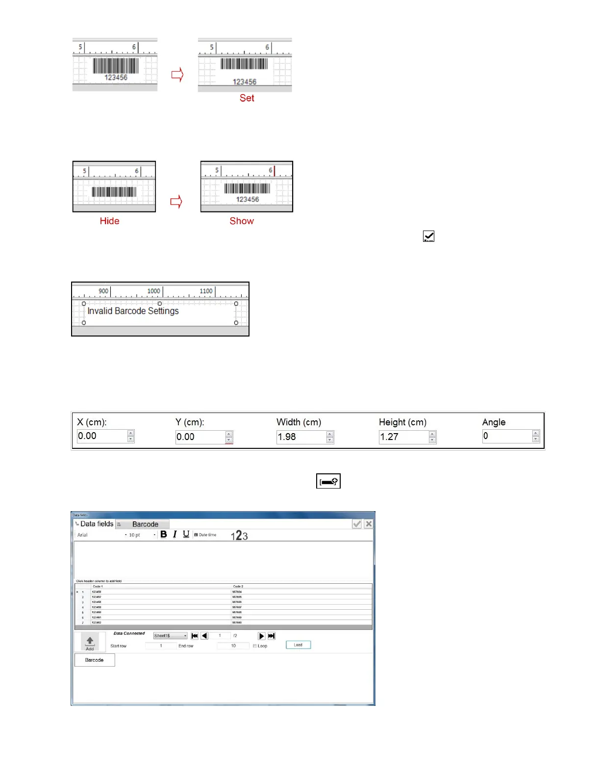Display Barcode data: show/hide barcode data.