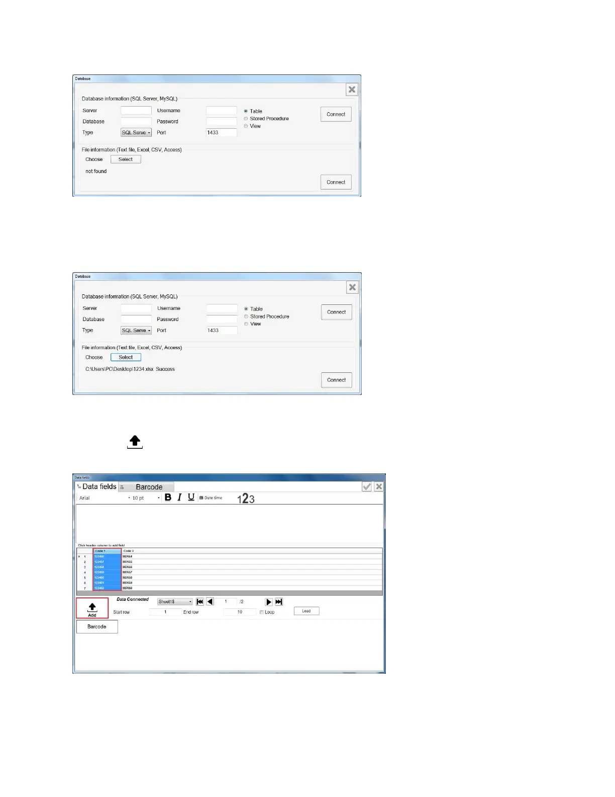 Click Load Data, Connect database window will pop up. There are two options for loading