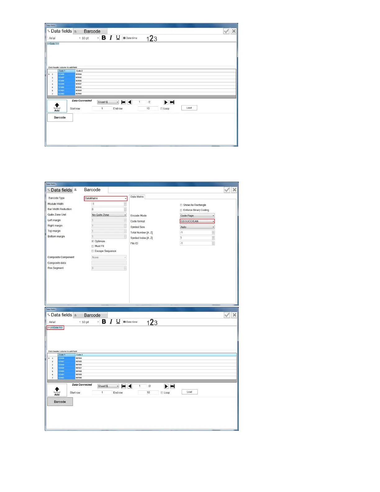 For type of Data Matrix barcode, select GS1 Compatible, and input the Application