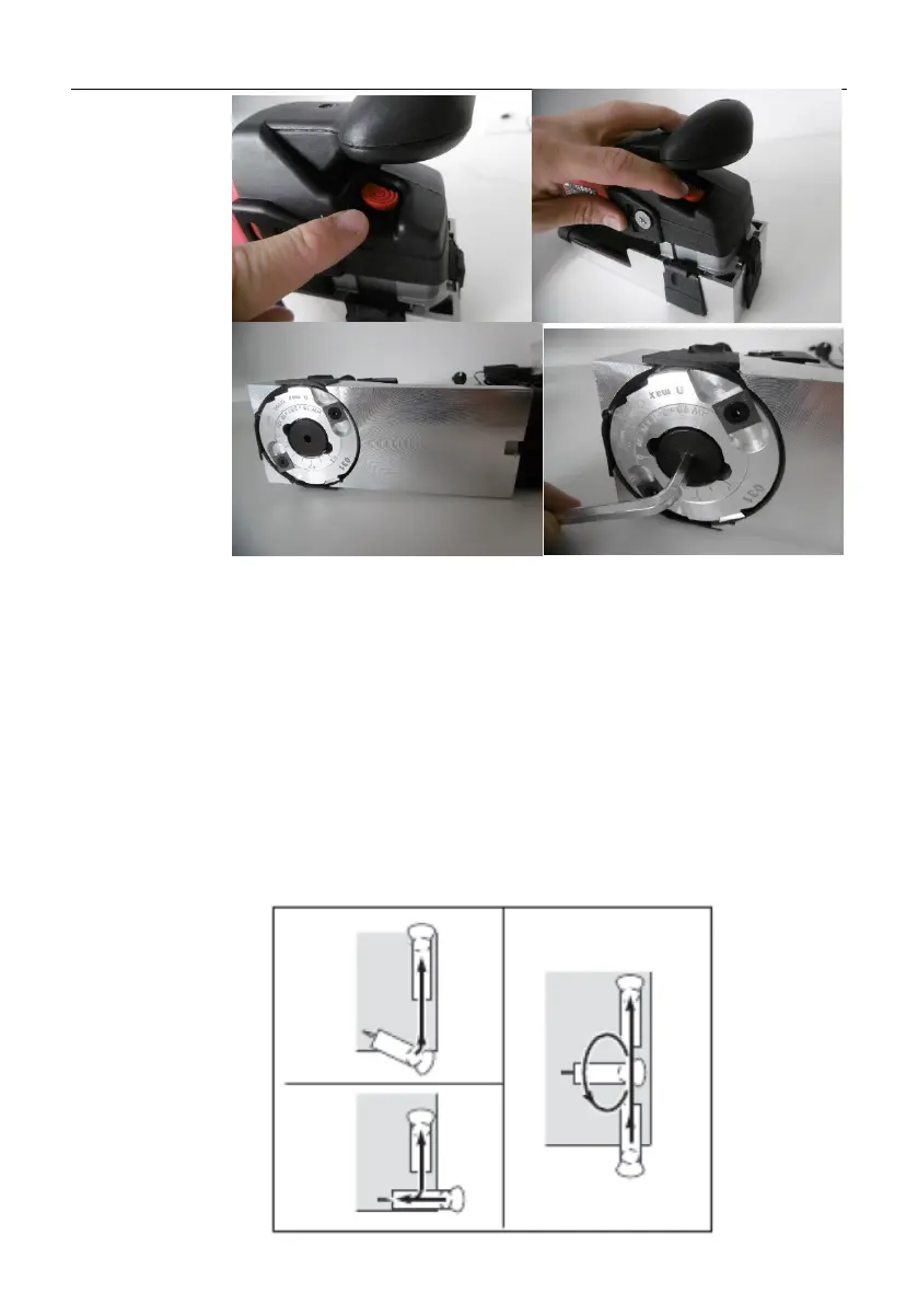 b) Srážení hran předmětu – zařízení držte rovnoběžně s hranou