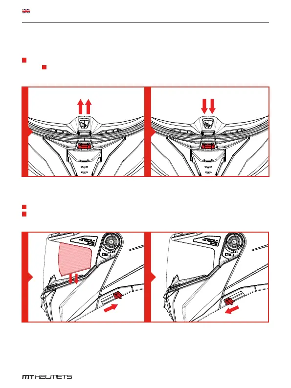 Push down the side tab located on the left side of the helmet to retract the sun visor.