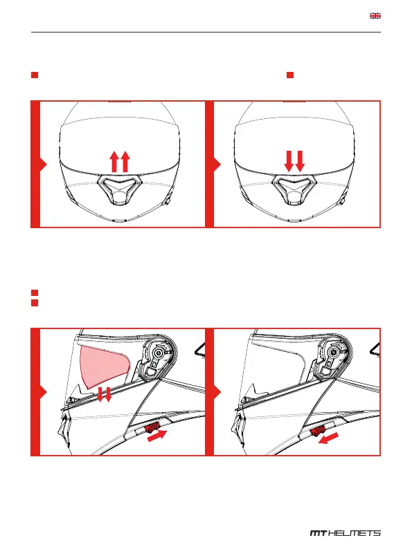 Push down the side tab located on the left side of the helmet to retract the sun visor.