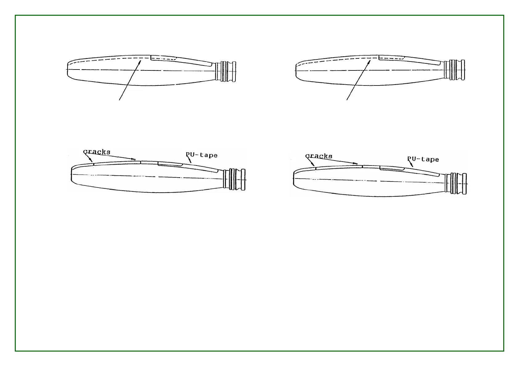 Cracked erosion sheath requires immediate repair. If chordwise