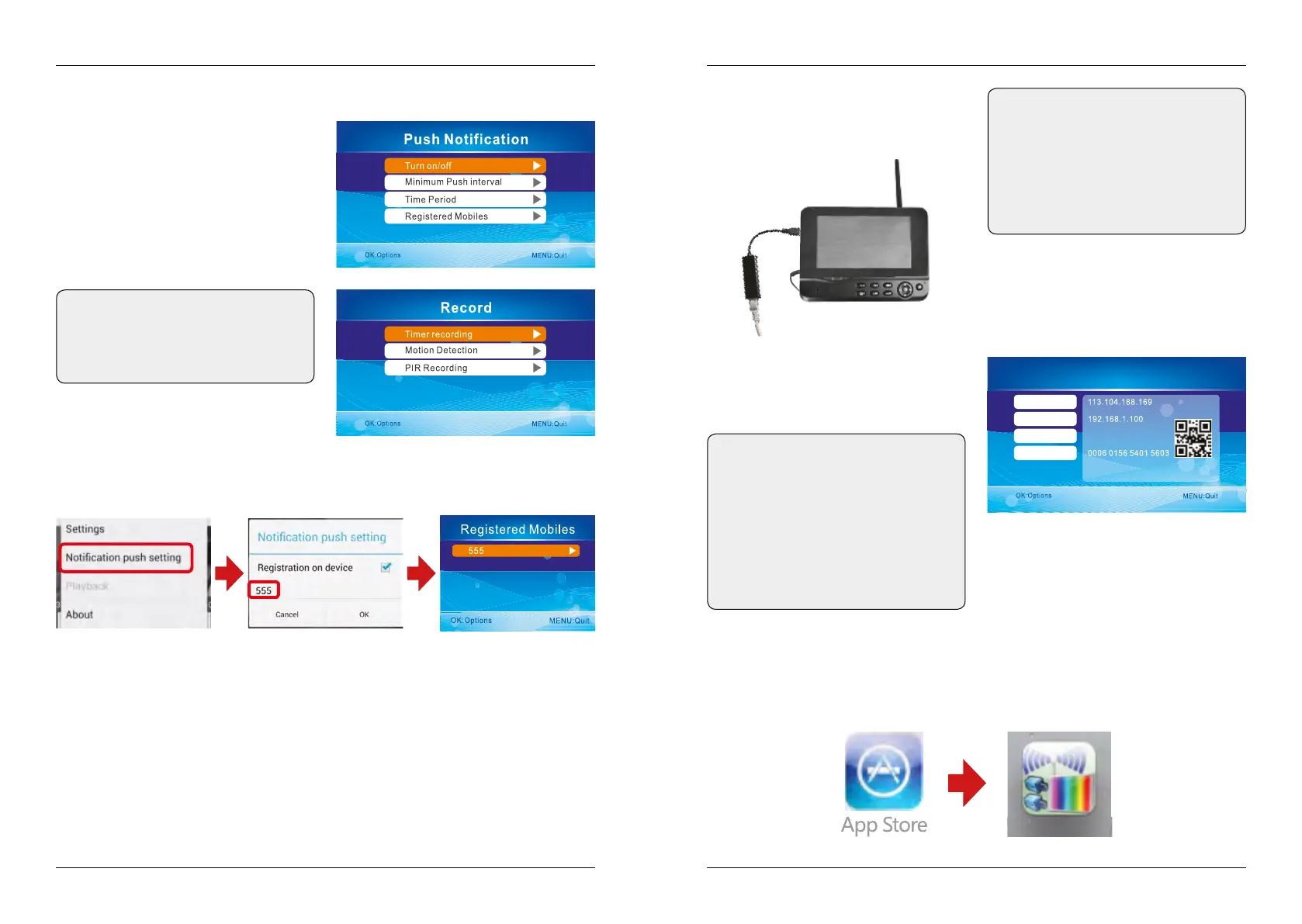 Click at the Android app to „push notification settings“ to register an account. When motion is
