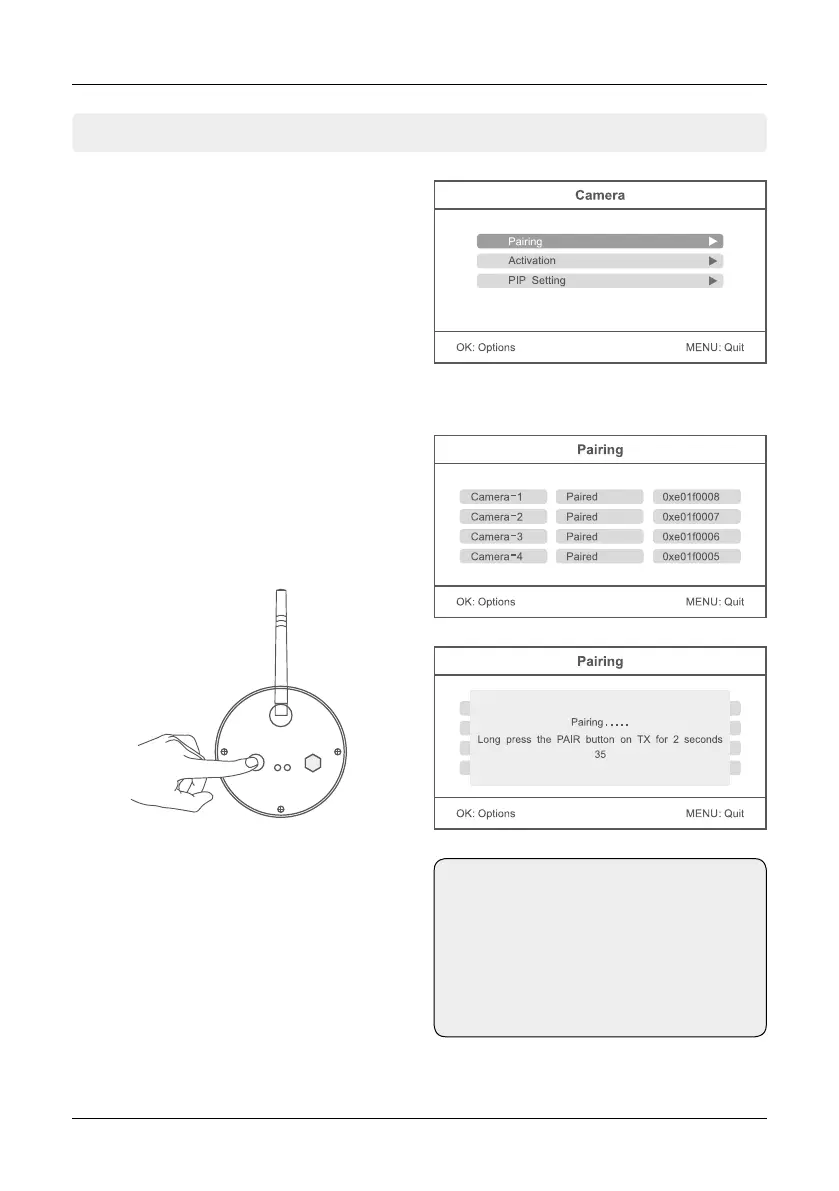 item „Pairing“. Now use the p or q button to