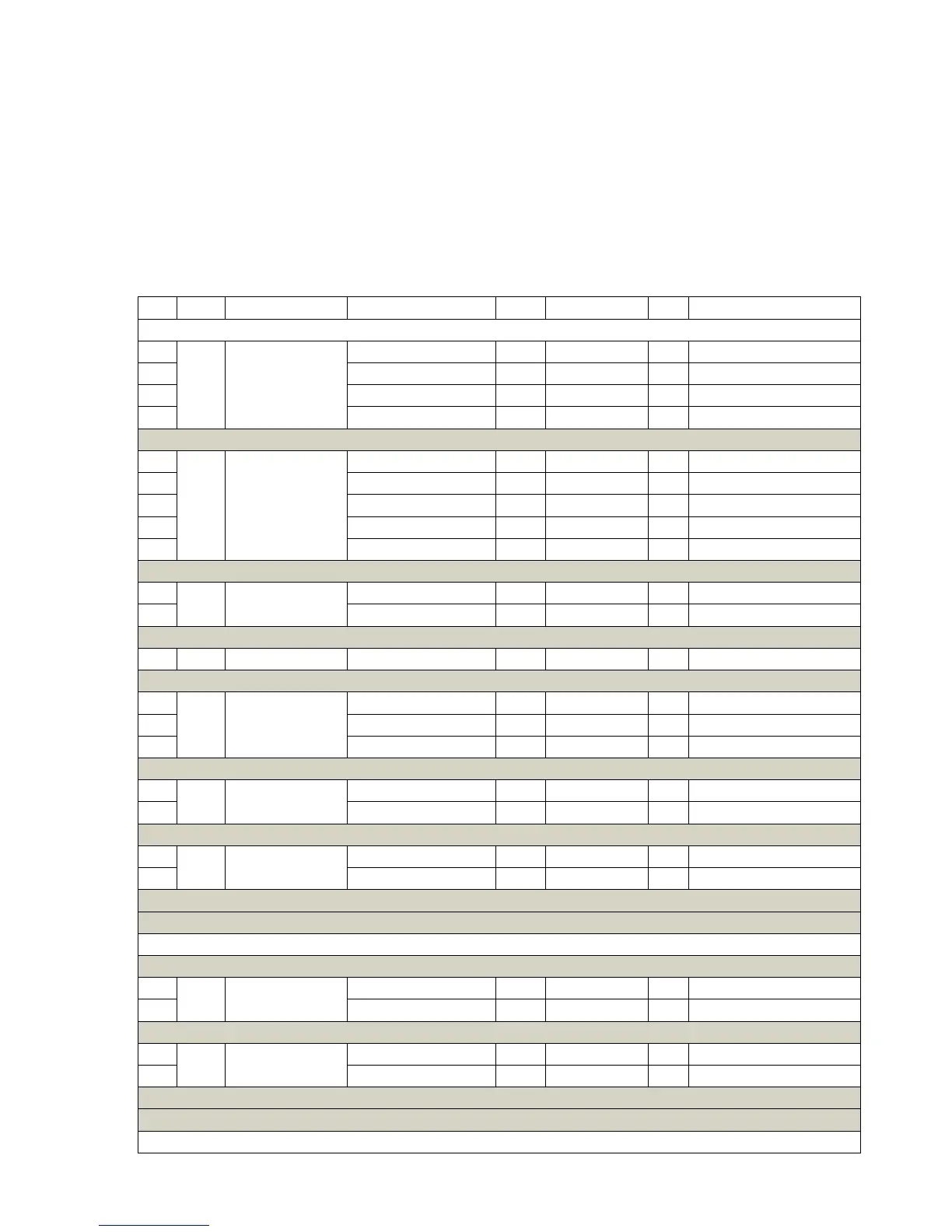 The table contains a list of the following: