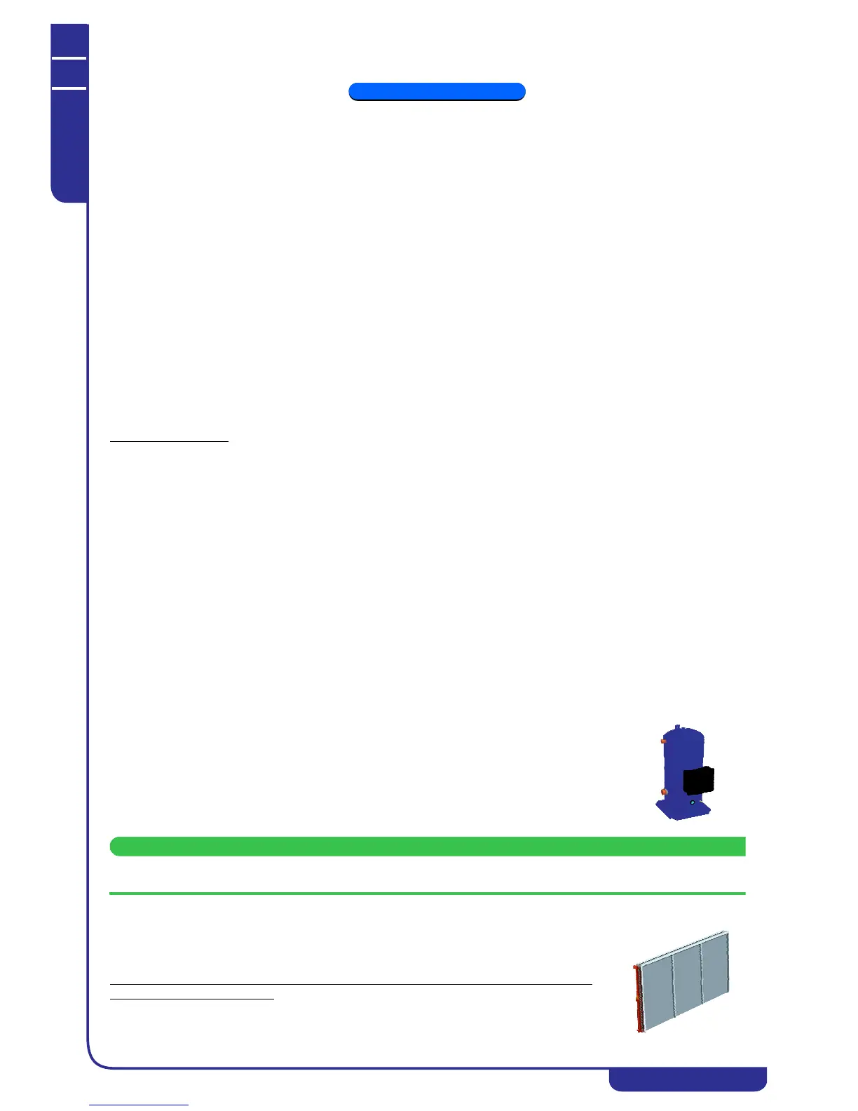 The compressors are of the SCROLL type and are quipped with built-in overtemperature protection