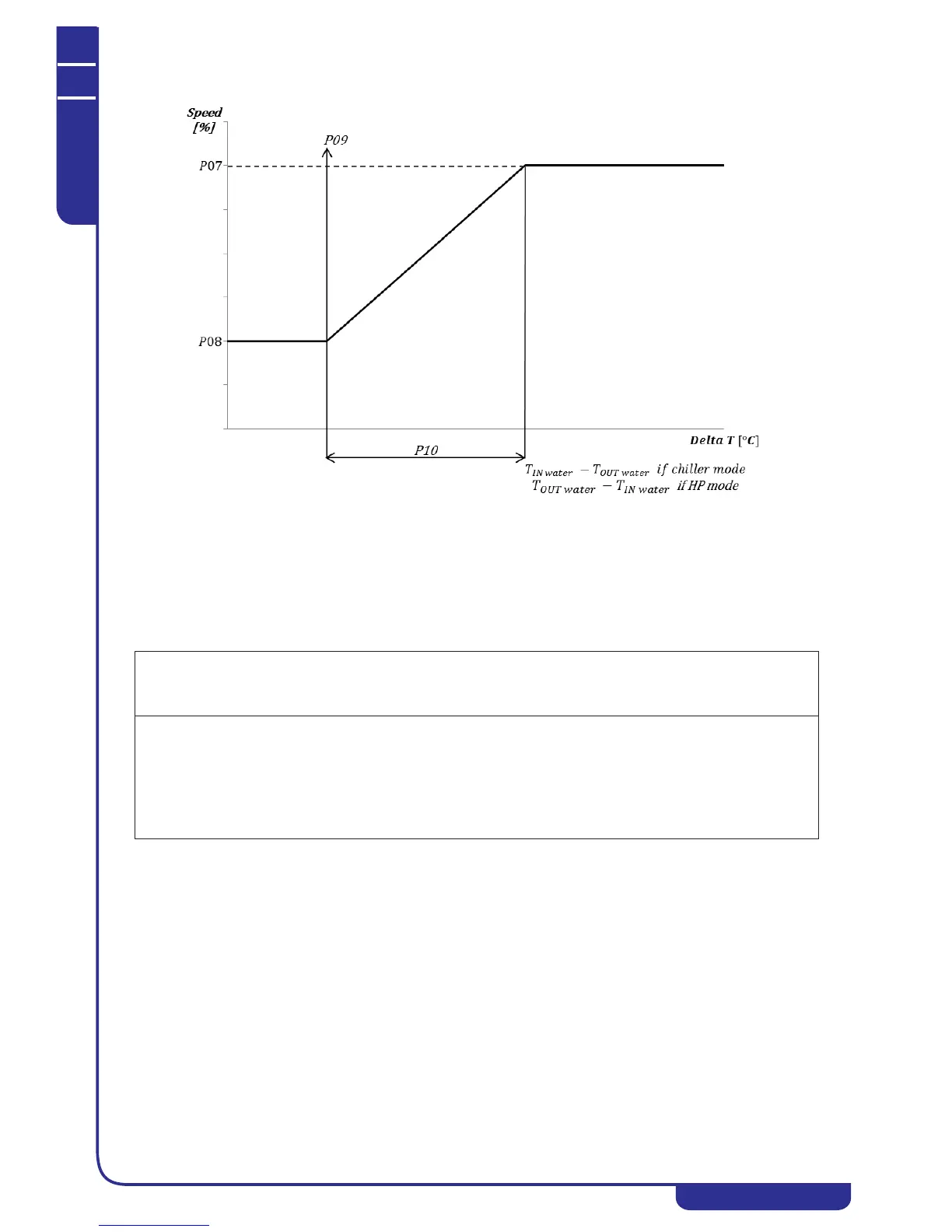 switched off when the temperature reading of the output water probe exceeds r02+r06 in “heat” or r03+r06 in “cool” mode and in “OFF”