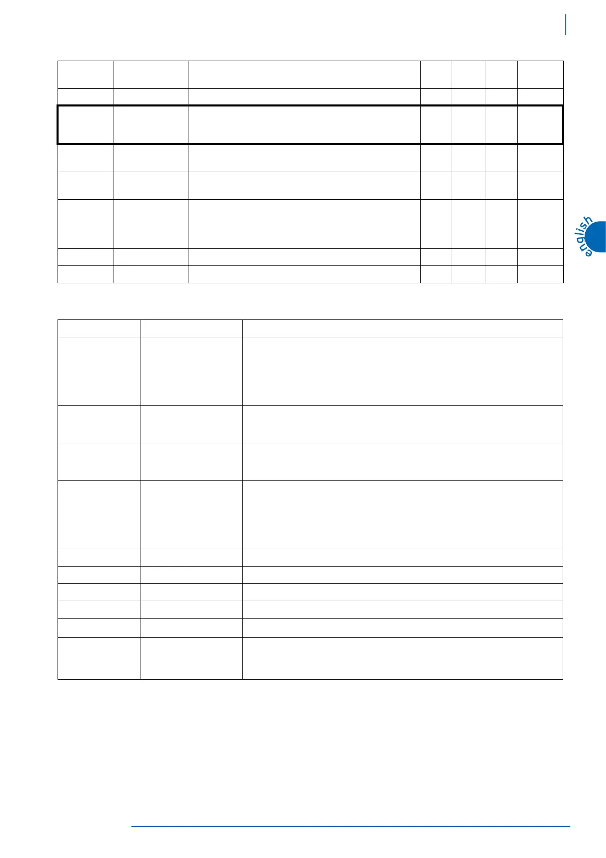 Ptb Parameters table Serves to identify the map of set parameters 1