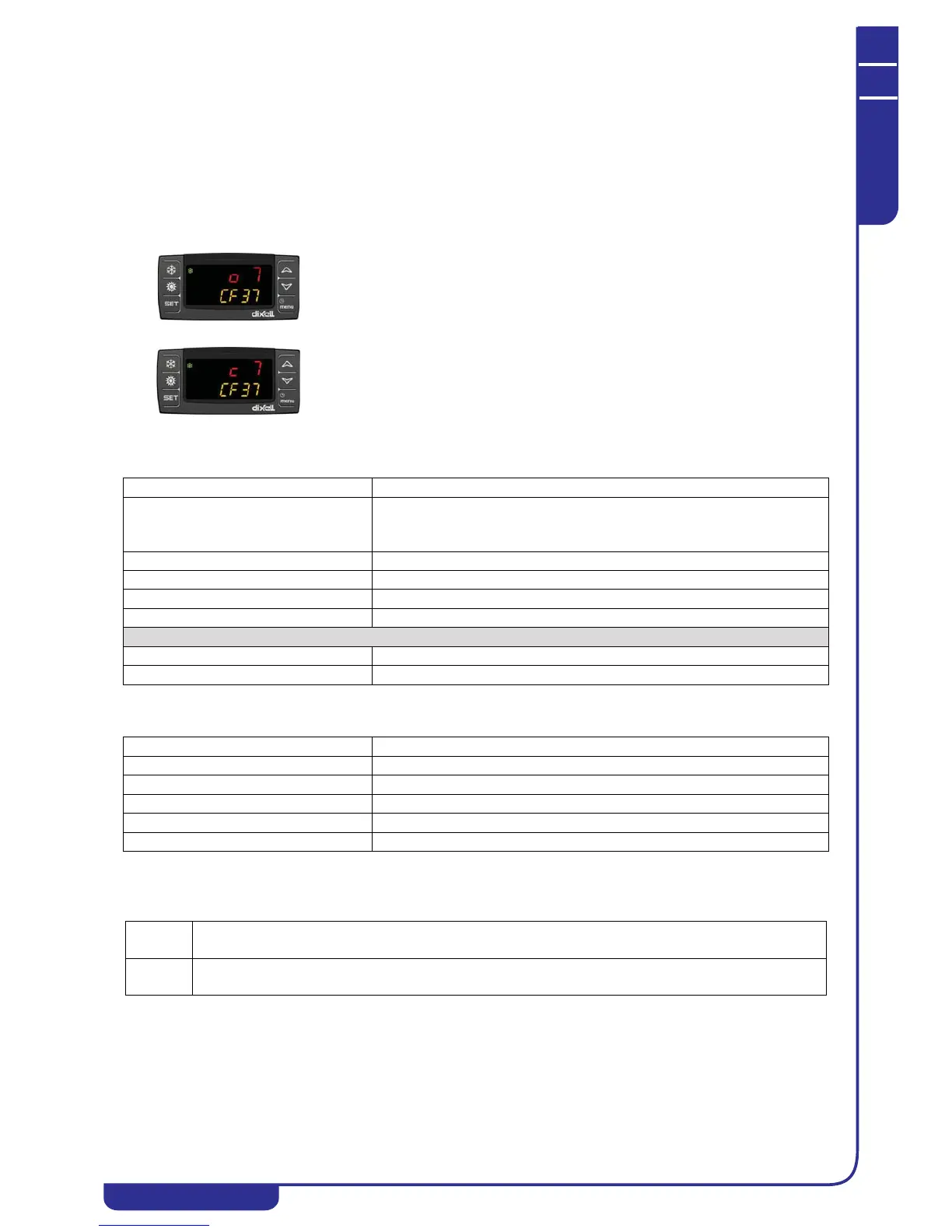 The lower display shows the parameter label (CF37) for configuration of the digital input ID8. The upper display shows label