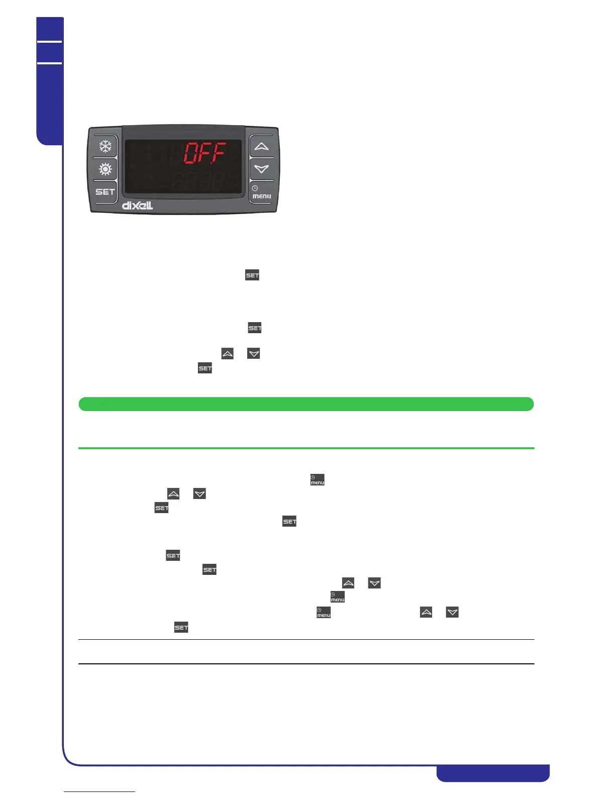 To change the unit working setpoint press the key for at least 3 seconds and the working setpoint SetC (chiller set) will