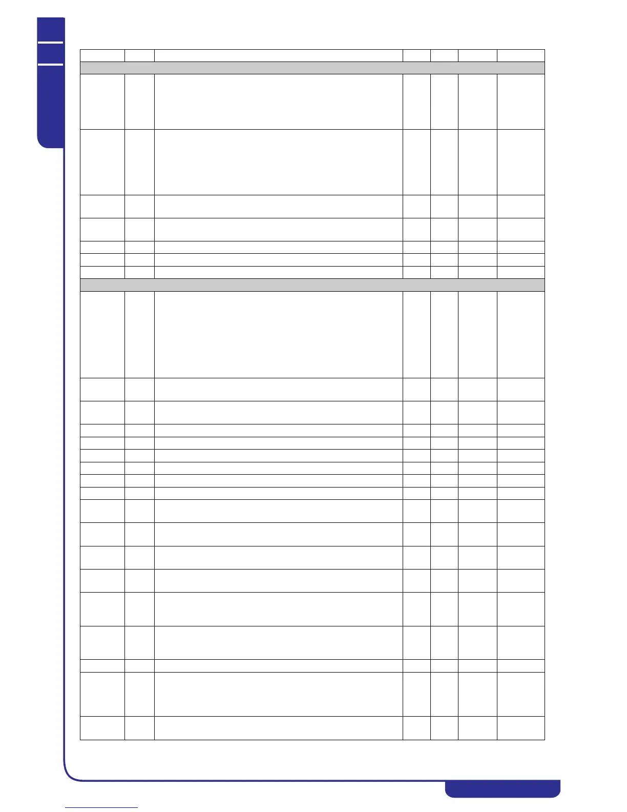 Parameter Level Description Min. Max. UM Resolution