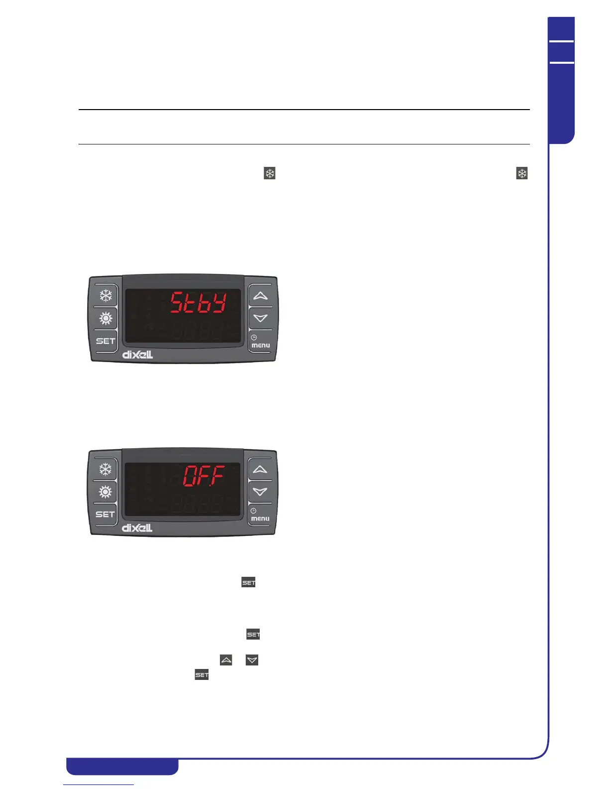With the unit in stand-by the lower display will show SetC (chiller set).