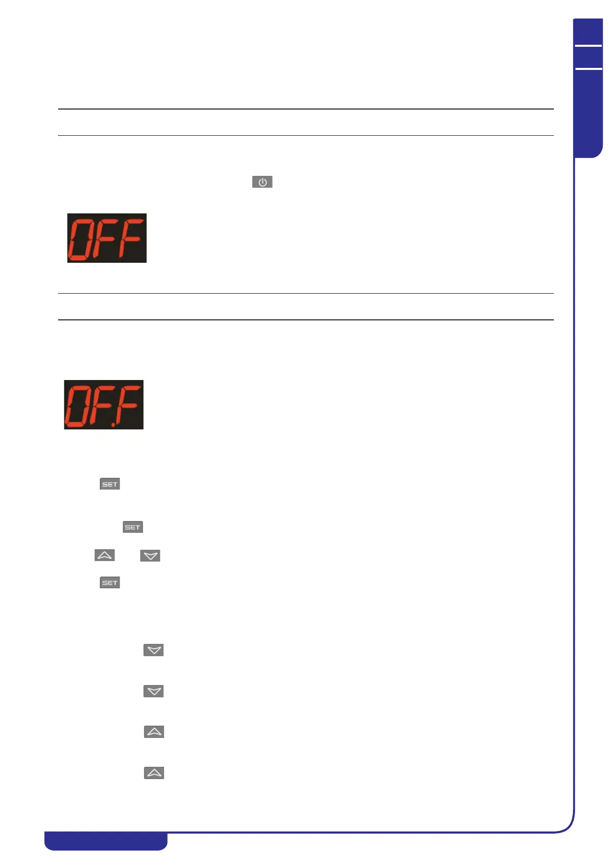 With the unit in standby (OFF) mode press the key. If the unit is on, the display shows the regulator probe value.