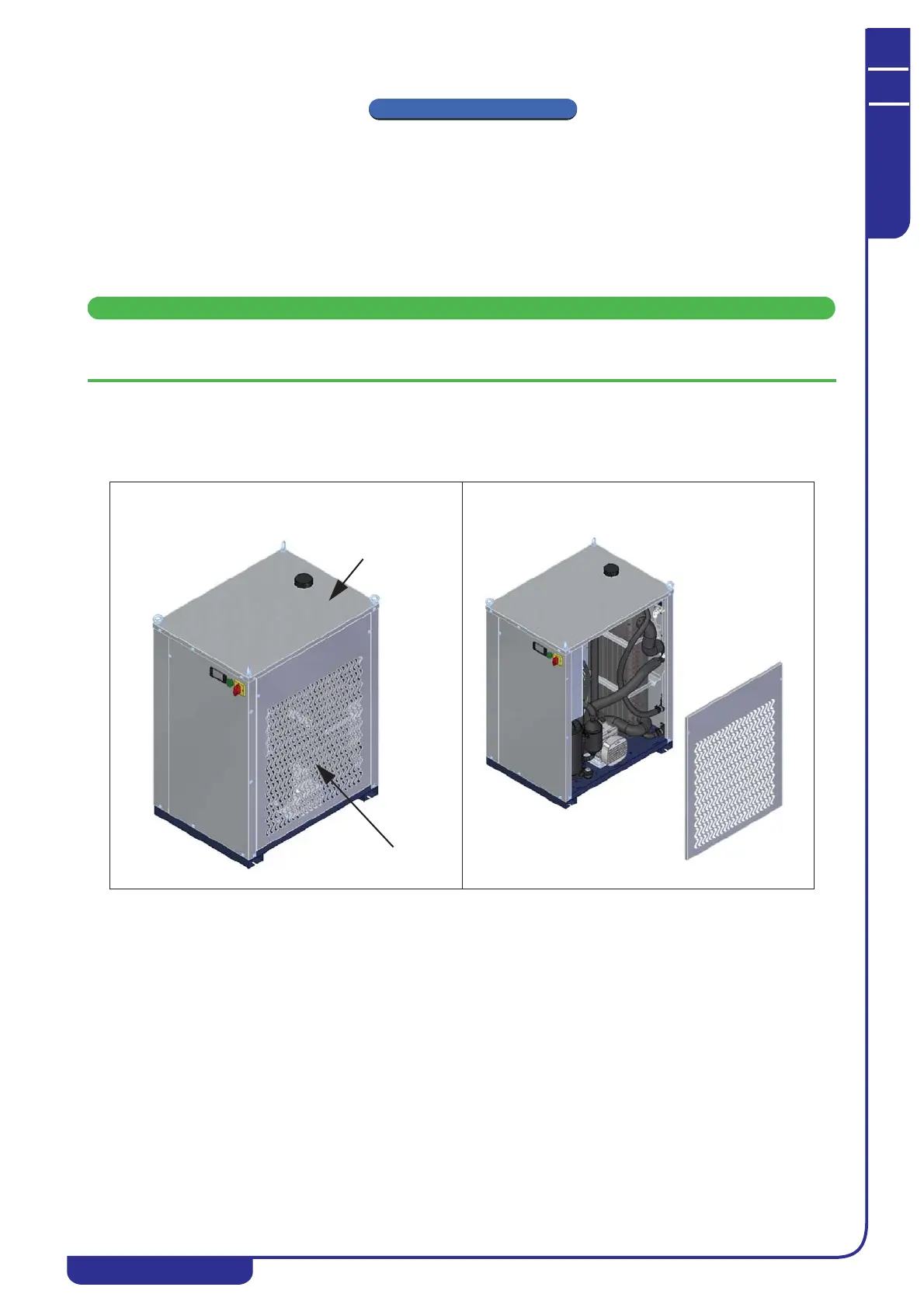 unit. Removing the front panel "A" gives access to the electrical panel, the pump, the water circuit and the refrigeration