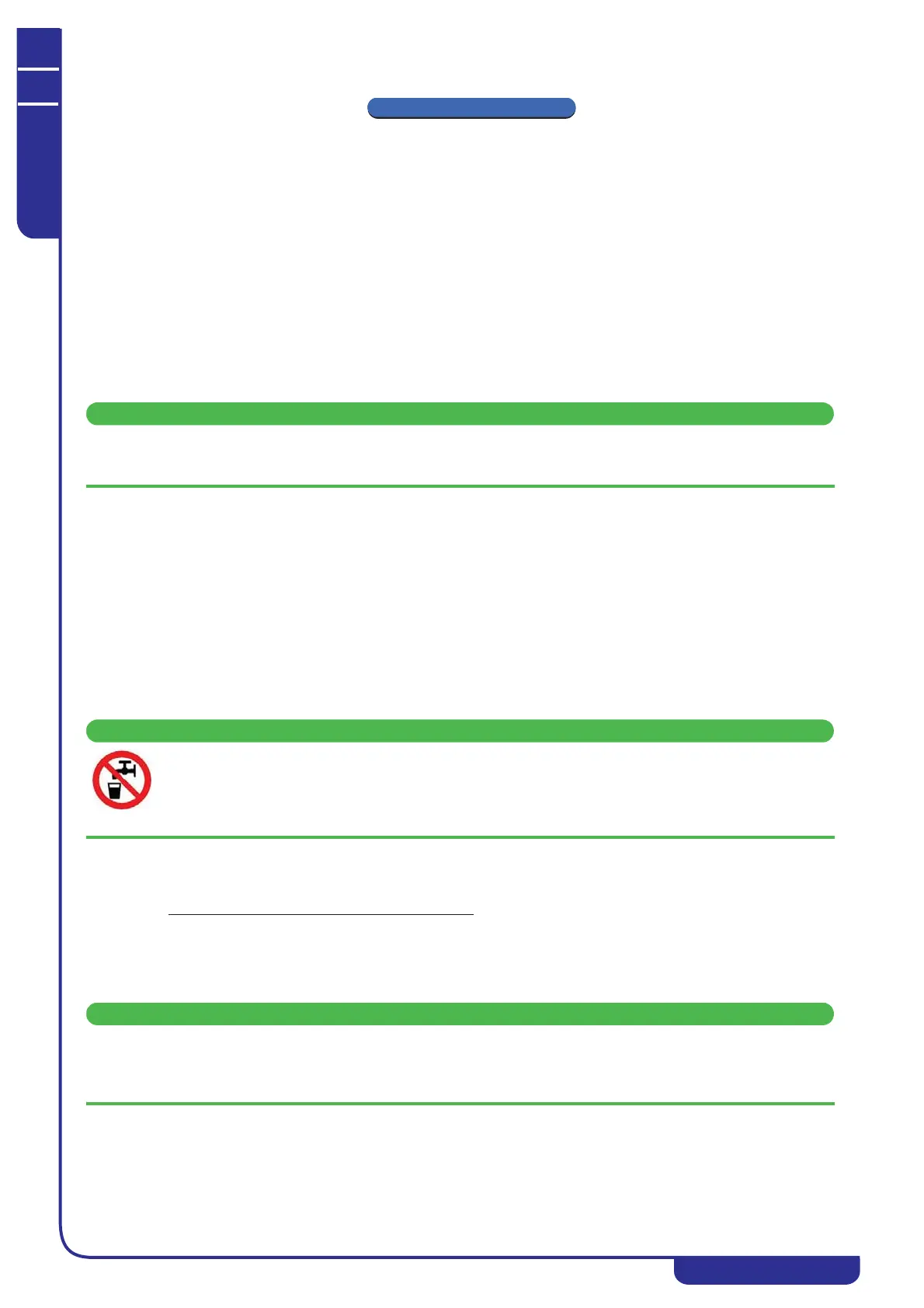 The hot / chilled water produced by units cannot be used for hygiene/sanitary or food applications. If it is