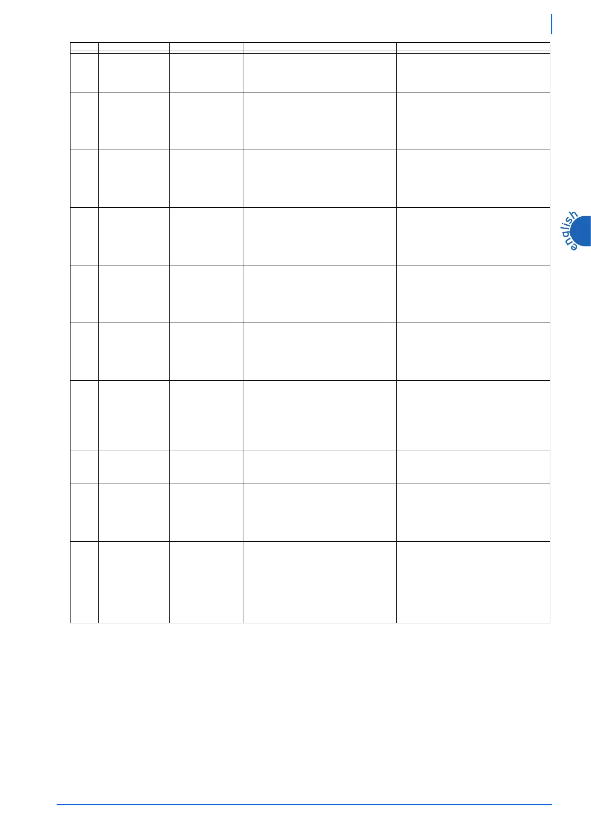 CODE MEANING CAUSE ACTION RESET