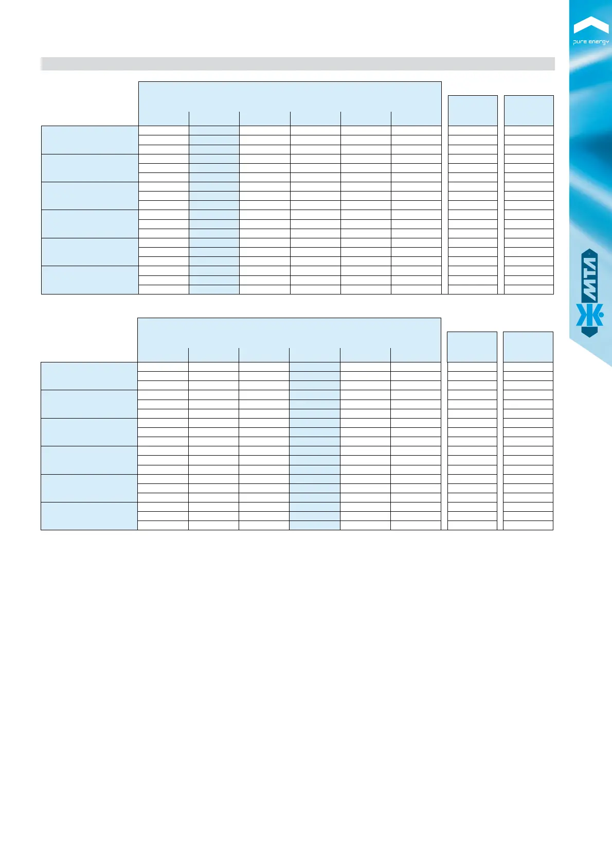 d’installation de la pompe à chaleur et la ligne avec la puissance thermique requise. Les puissances thermiques indiquées dans le tableau