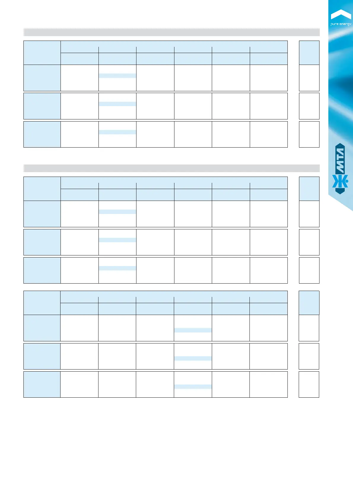 tu: outlet water temperature; Pf: cooling capacity; Ph: heating capacity; Pa: power absorbed by the compressors; Fw: water flow rate (6T = 5 °C).