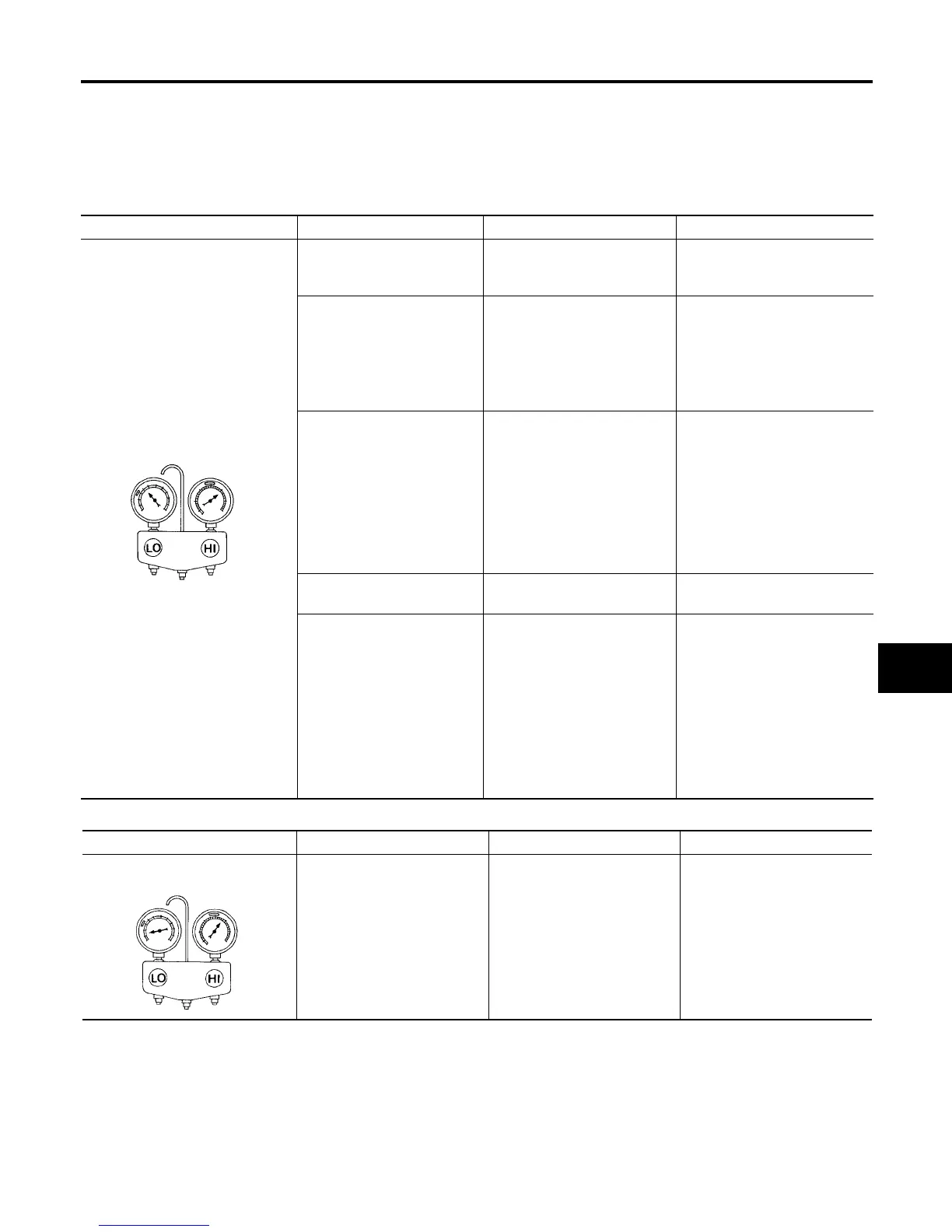 Gauge indication Refrigerant cycle Probable cause Corrective action