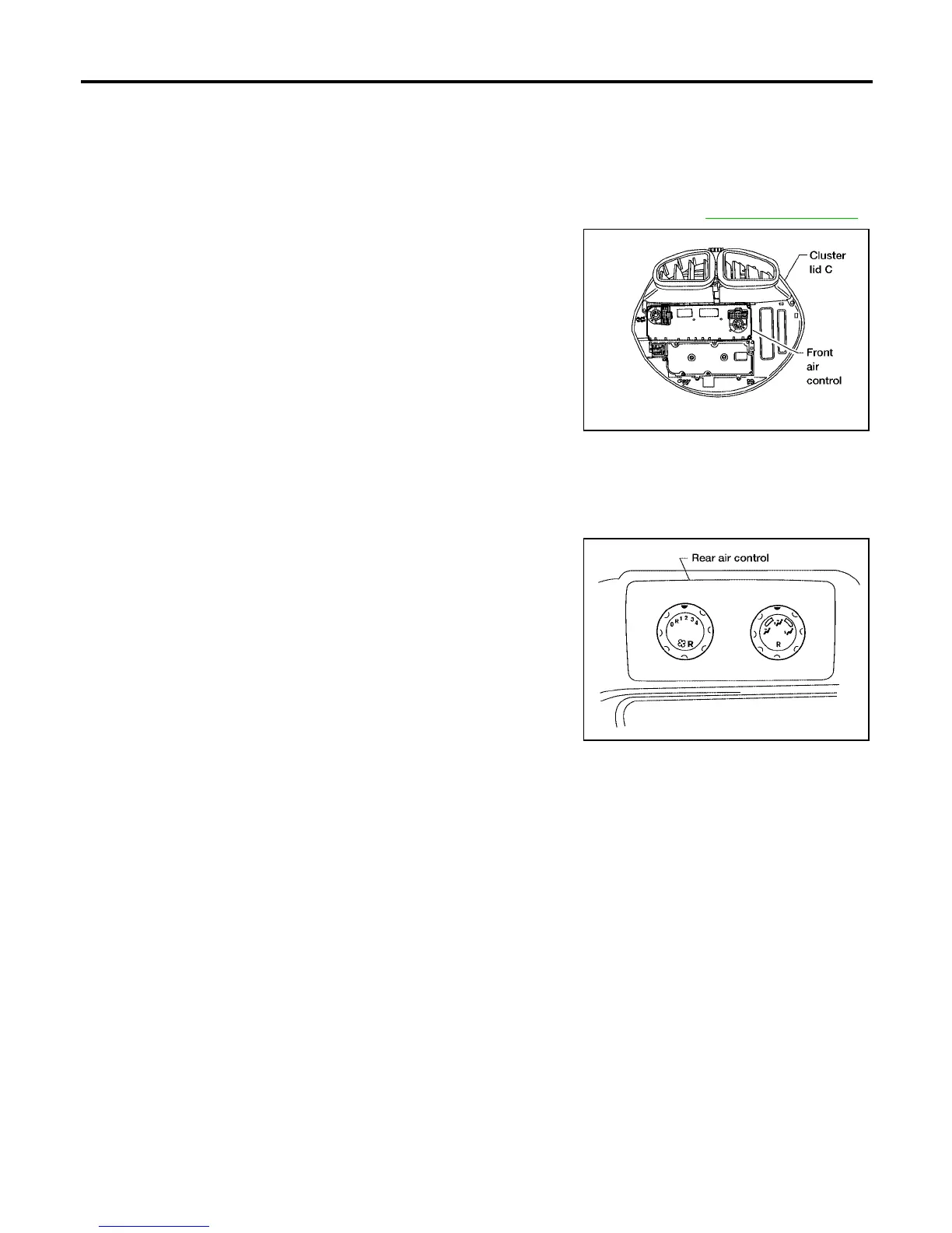 2. Remove cluster lid C, disconnect the front air control electrical connector. Refer to IP-11, "