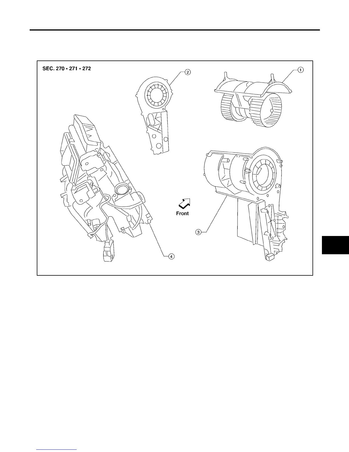 1. Front blower motor 2. Blower motor side cover 3. Blower motor case