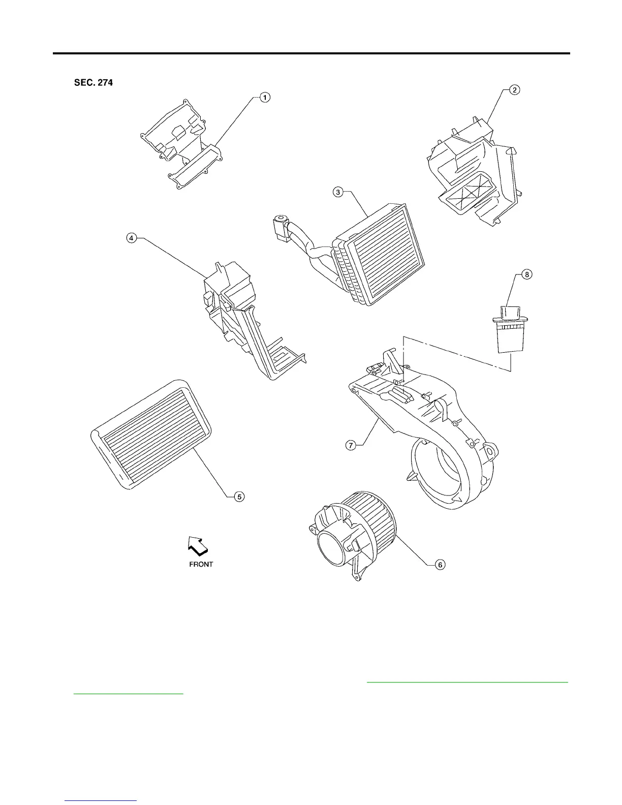 1. Front cover 2. Evaporator and heater core case 3. Evaporator