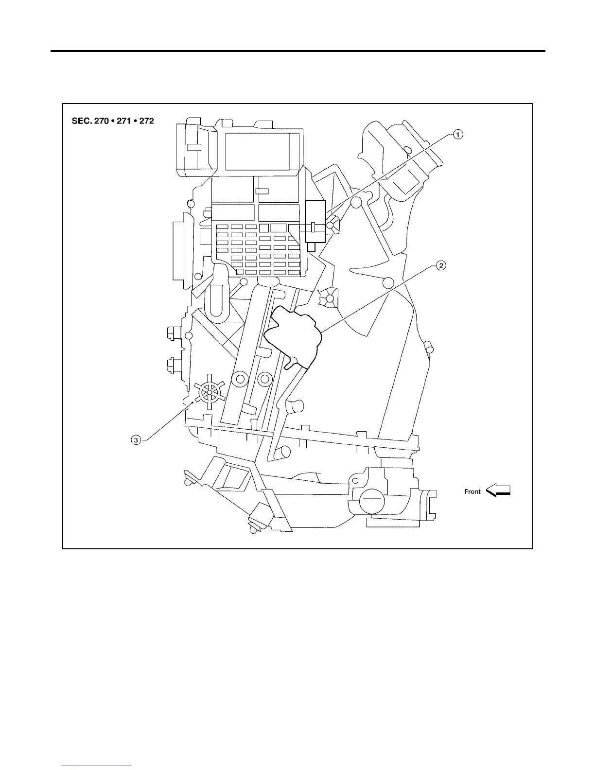 1. Intake door motor (driver) 2. Air mix door motor (front) 3. Front heater and cooling unit assembly
